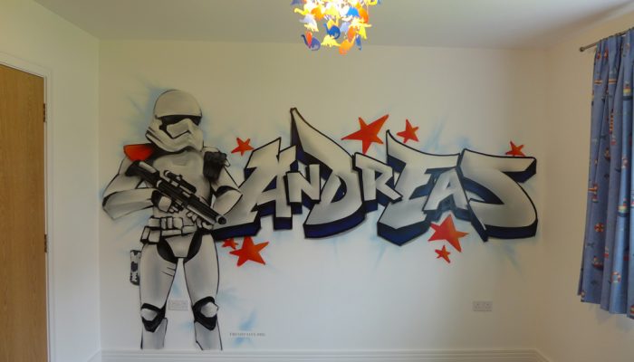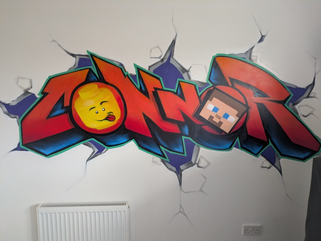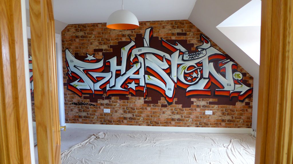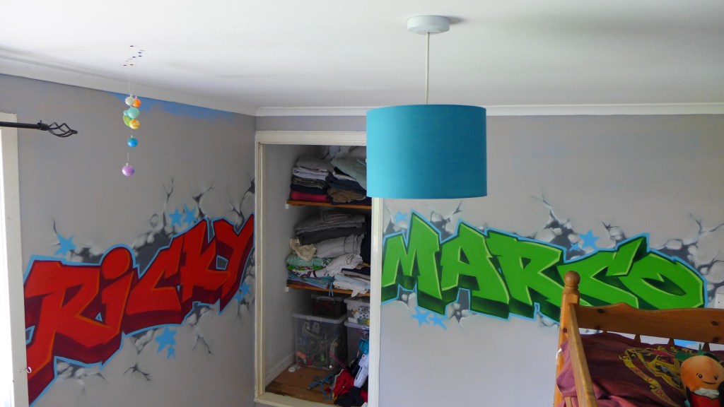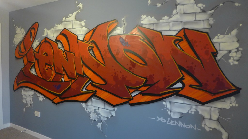 Boring white walls? Custom graffiti names for the bedroom of your dreams. Your name, your colours… “Let’s Get Some Colours On Those Walls! “